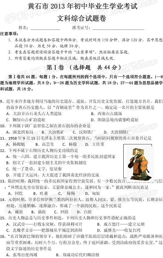 湖北黃石中考時間2025年具體時間(6月20日至22日)