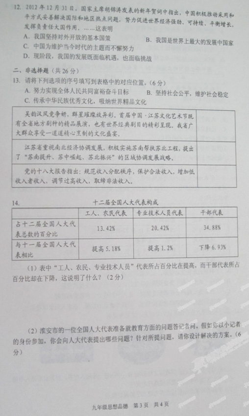14. (1)說明我國是人民當家作主的社會主義國家,人民是國家的主人,一切權力屬于人民 ;國家保障人民享有廣泛的民主權利,人民民主是廣泛的、真實的民主。一點1分,共2分。