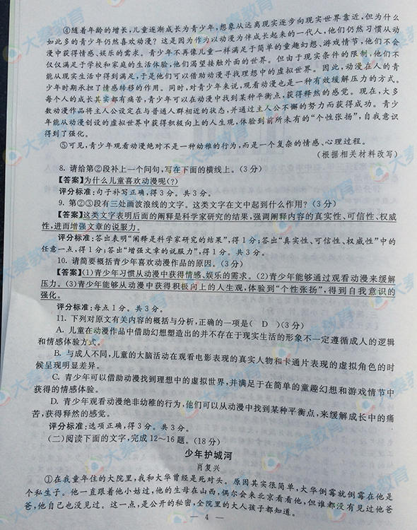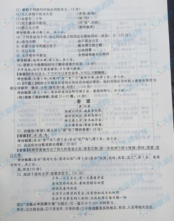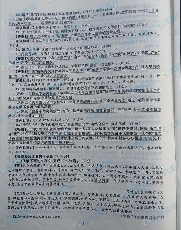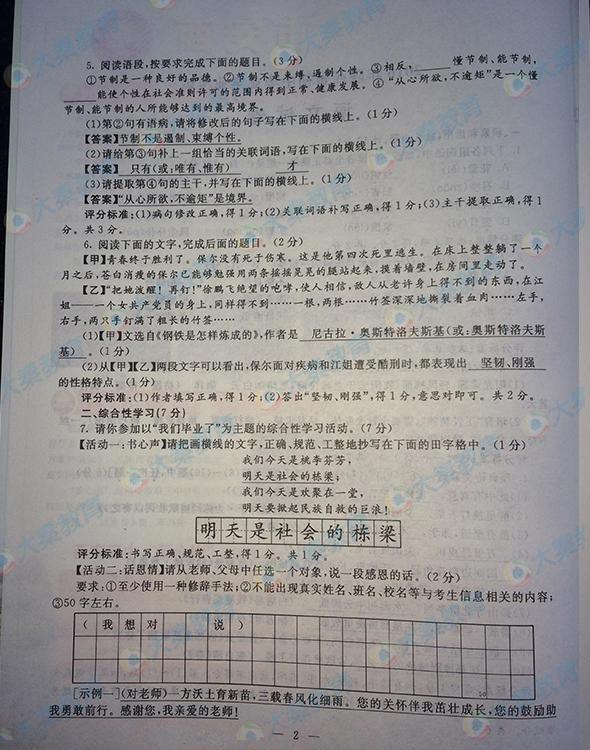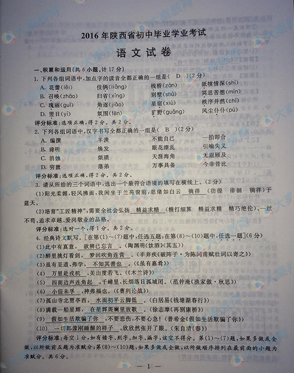 2016年陜西寶雞中考語文試題(已公布)