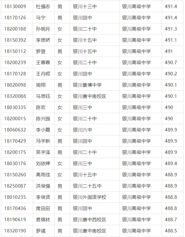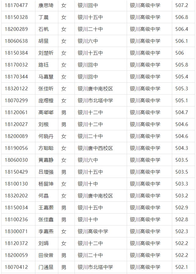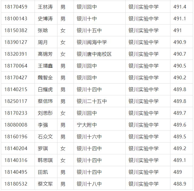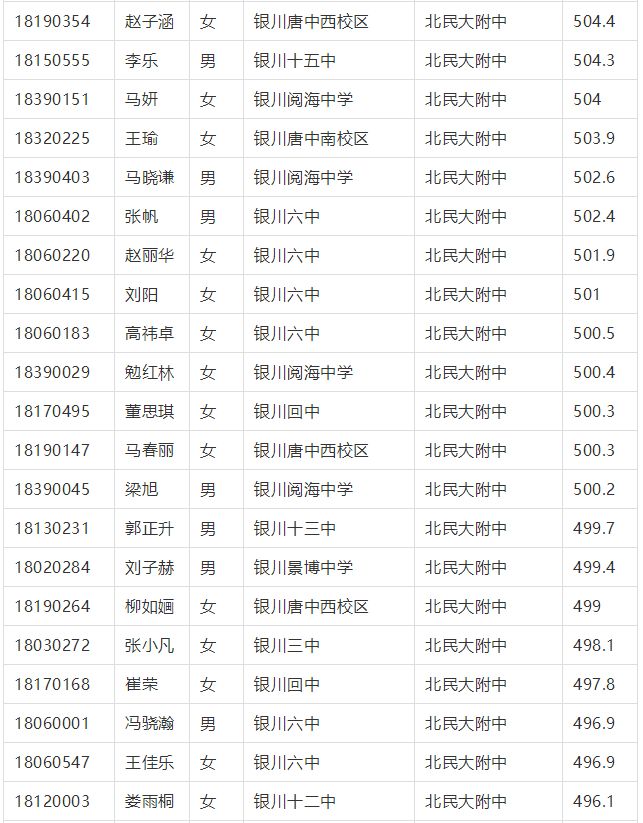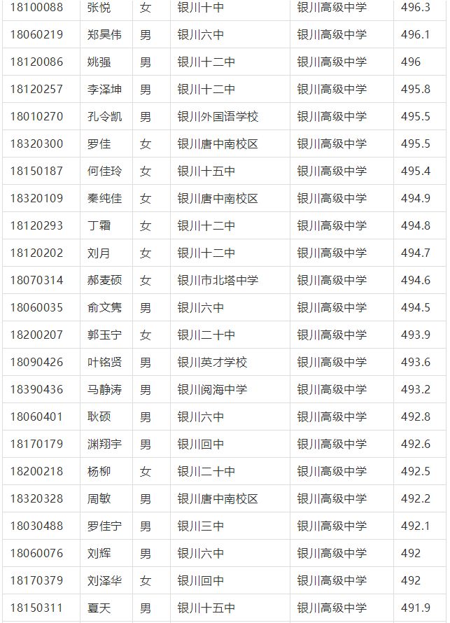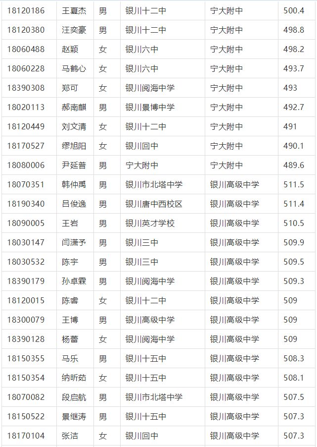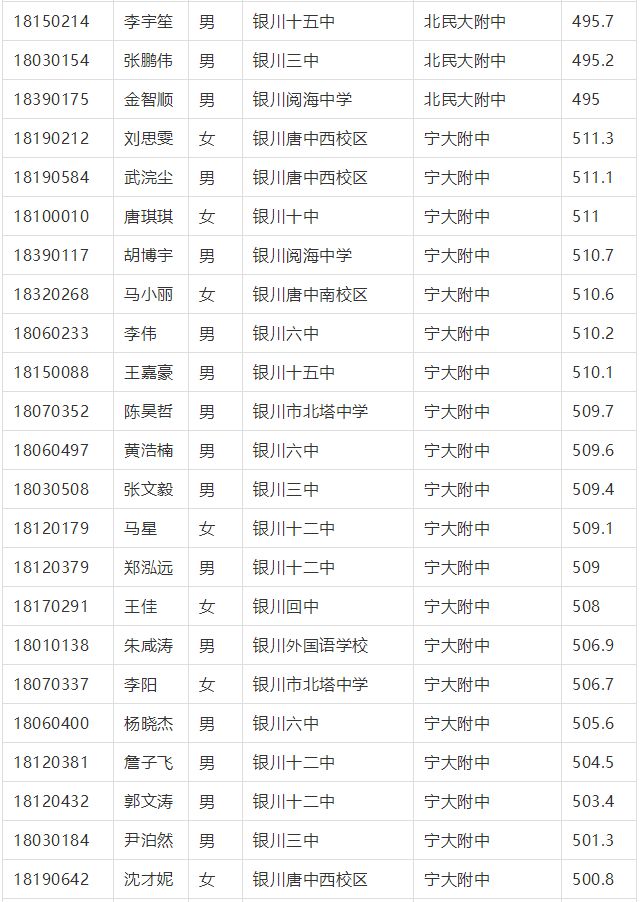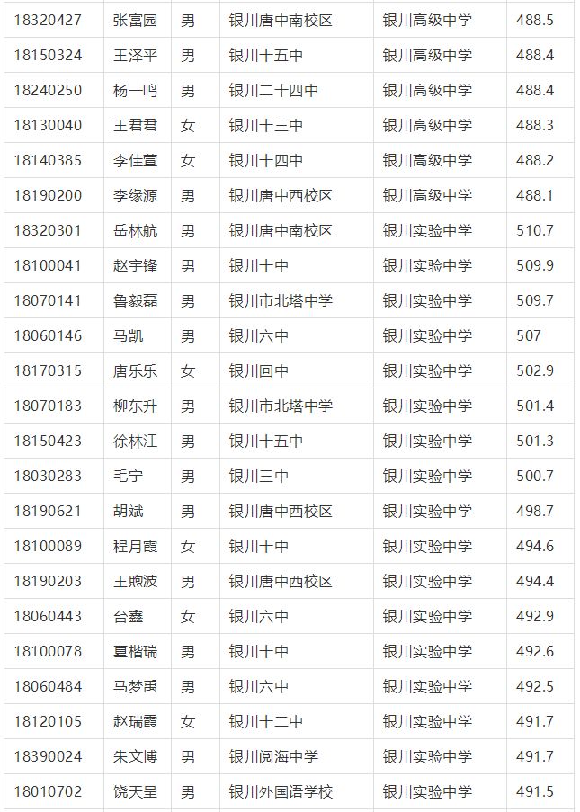 2018年(nian)銀川市中考征集志愿錄取名單